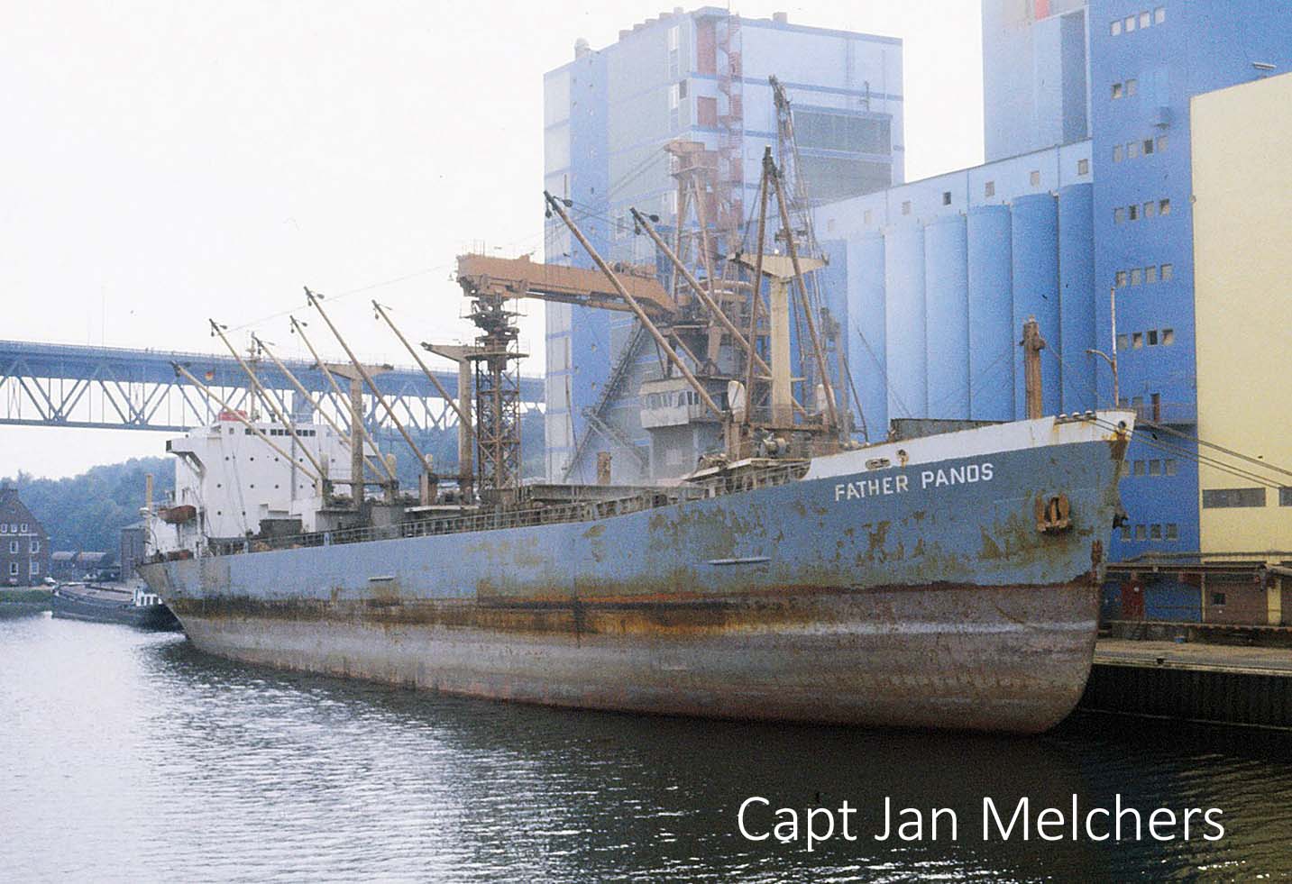 Father Panos, Panos being the Christian name of the founder’s father, was built at Sunderland in 1968 as Sheaf Crest for W.A. Souter of Newcastle, and nominally owned by Equality Shipping Company S.A., Following four years laid up at Piraeus she was delivered to Shanghai breakers in March 1986 as Panos.
