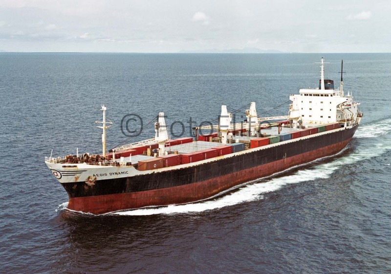 In 1989 the South Island, built at Bilbao in 1975 as Aegis Dynamic (above) for Papalios, which traded for Overseas Shipping until transferred to Ypsilon Maritime in 1993 and renamed Anastasia. Photo: FotoFlite