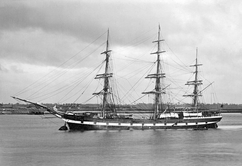 28th June – At anchor in Simon’s Bay. The crew worked reluctantly and were very noisy causing great annoyance to the chief and second officer. They paid little attention to the orders given and one AB named John Bellamy hauled the ensign down, but when he was brought before me and rebuked he said he would do it again. I put him in irons. The whole crew left their work and came aft in a body, but most reluctantly turned to again when ordered.