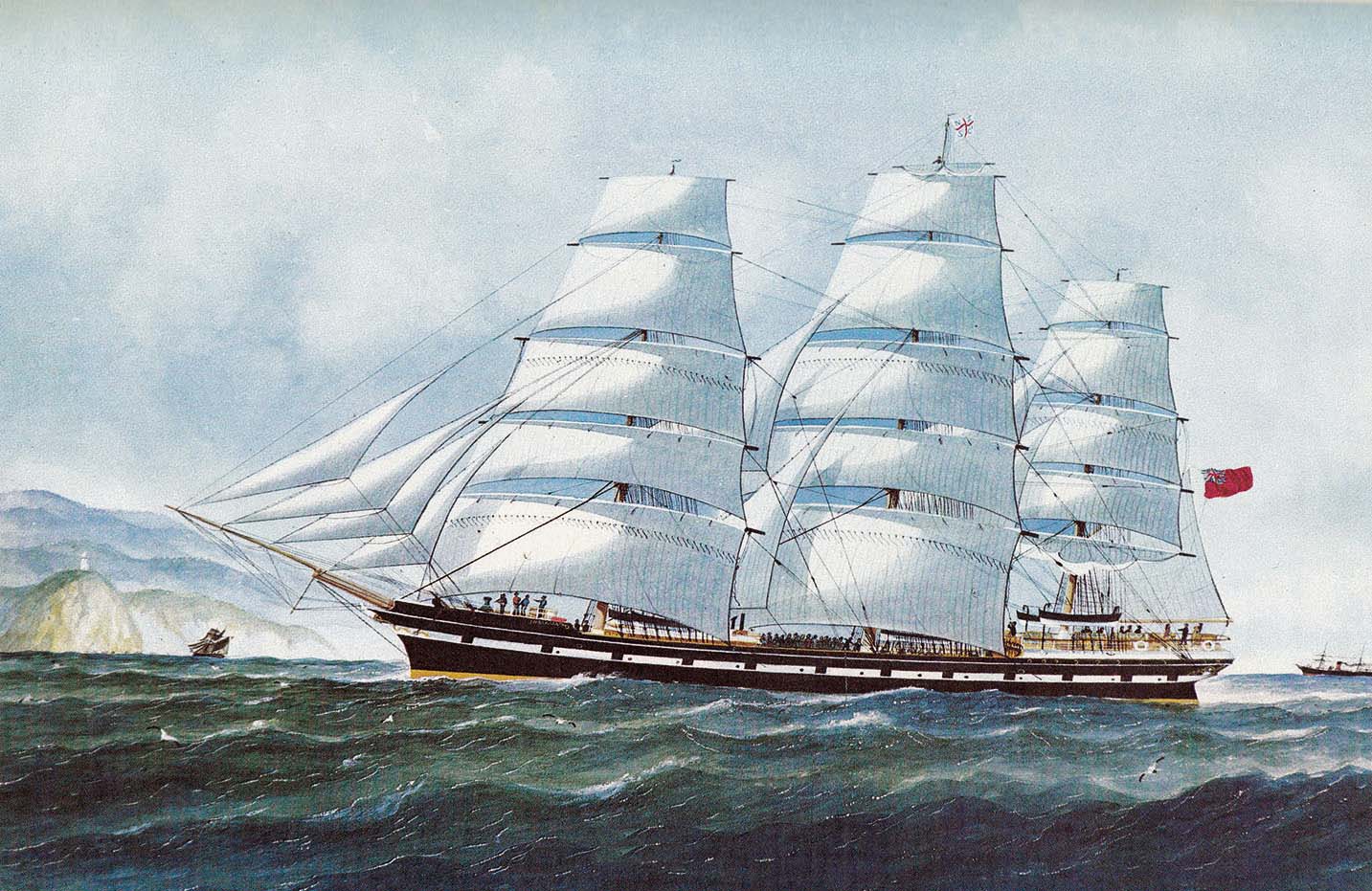 Much has been written and many a picture painted on sailing ships passing steamers; the most famous of which, was when the Cutty Sark passed the 16 knot RMS Britannia in the middle watch of 26 July 1889. Sailing ships had often given steamers the ‘go by’ but these were normally paddle wheelers or seven knot screw ships. However, when those ships were 14 knot auxiliary steamers carrying passengers and mails a different perspective emerges. It has been said that many a sailing ship master would sacrifice his masts, yards and sails to leave a mail boat in his wake.