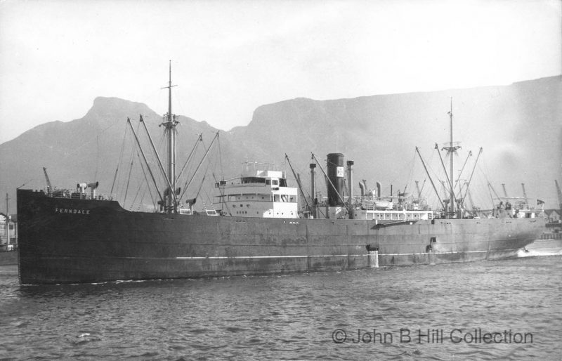 - Fernlane torpedoed and sunk by Italian submarine Enrico Tazzoli on 7.5.1941 to west of Monrovia while on a voyage from the Clyde and Manchester to Freetown and West Africa with salt, stores and 8 aircraft, all crew saved.