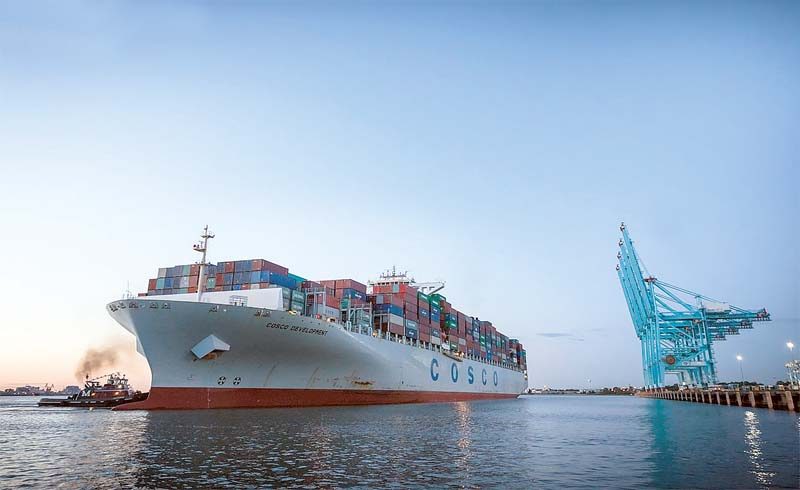 Container ships to be seen at this and other Norfolk terminals are owned by Evergreen, Hamburg Sud, Hapag Lloyd, Maersk Line, MSC, CMA-CGM, NYK. OOCL, Alianca, APL, Mitsui OSK, Atlantic Container Line, ‘K’ Line, Turkon Line, Zim Line, Yang Ming, China Shipping Container Line (CSCL), United Arab Shipping Corporation (UASC), COSCO, CSAV, Hyundai, Libra Line and many other lines, as well as the coastal shipments of Columbia Coastal and Richmond Barge Company.